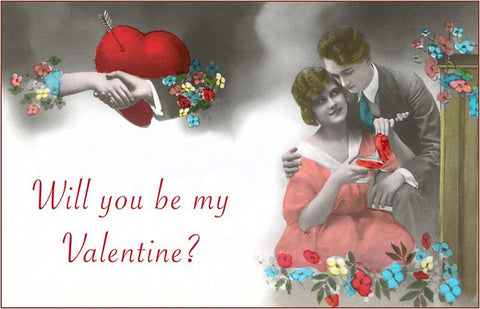 VL-249 Will You Be My Valentine, Couple Opening Box - Vintage Image