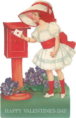 VL-258 Little Girl at Mailbox, Valentine - Vintage Image