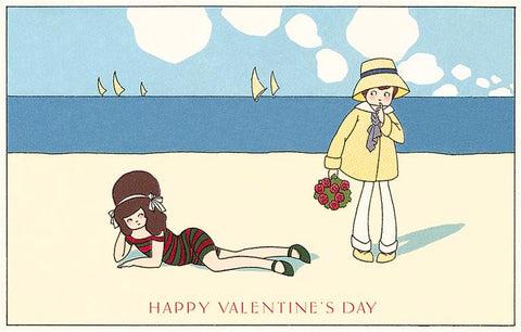 VL-315 Happy Valentine's Day, Shy Children on Beach - Vintage Image