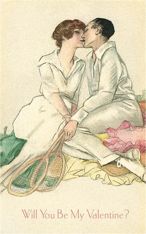 VL-325 Tennis Couple Kissing, Valentine's Day - Vintage Image