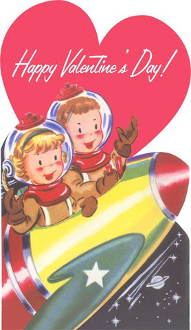 VL-364 Happy Valentine's Day, Kids in Rocketship - Vintage Image