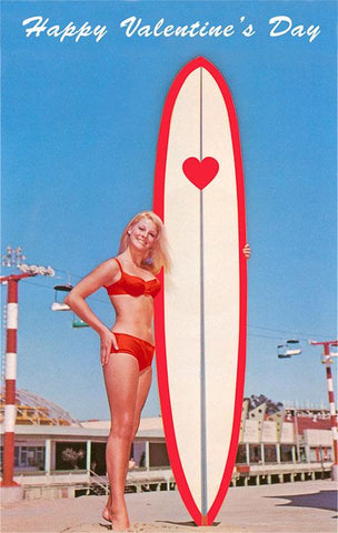 VL-366 Happy Valentine's Day, Surfer Girl - Vintage Image
