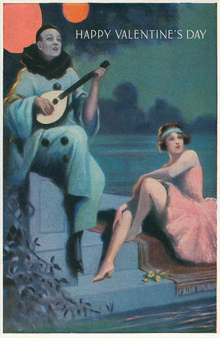 VL-394 Happy Valentine's Day, Strumming Pierrot with Dancer - Vintage Image