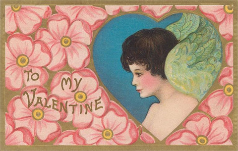 VL-457 Cupid in Blue Heart, To My Valentine - Vintage Image