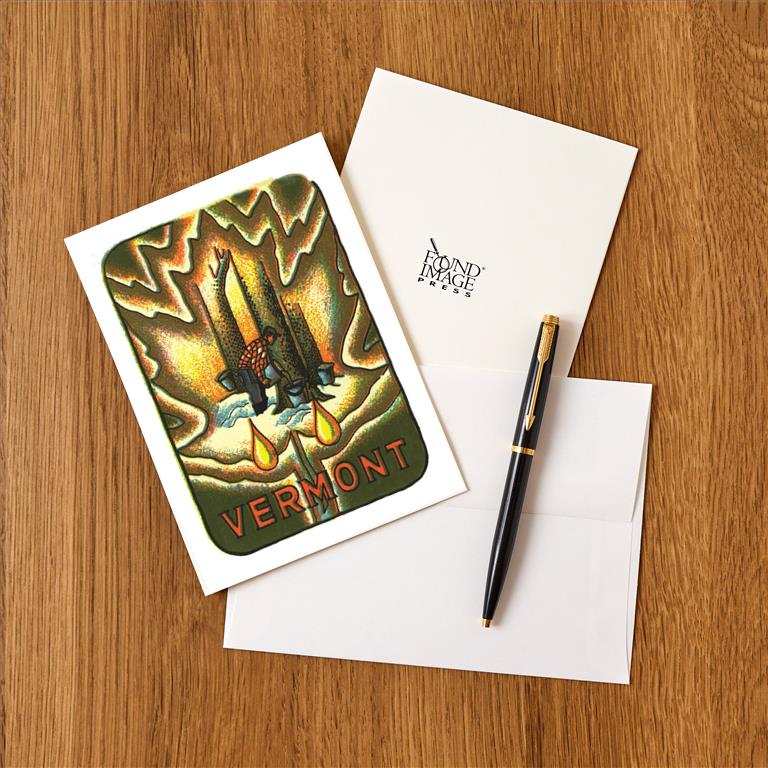 Explore the scenic landscapes and rich history of Vermont with Found Image Press's exclusive wholesale collection. Our vintage postcards, greeting cards, desktop calendars, art prints, stickers, and magnets capture the essence of the Green Mountain State. Ideal for retailers seeking to offer unique and nostalgic items, each product is crafted with premium materials for lasting quality. Discover a curated selection that showcases the beauty and heritage of Vermont.