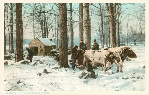 VT-01 Maple Sugar Camp in Winter with Oxen - Vintage Image