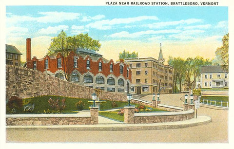 VT-104 Plaza near Railroad Station, Brattleboro - Vintage Image