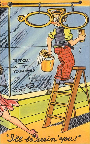 HU-44 Window Washer Ogling Woman - Vintage Image