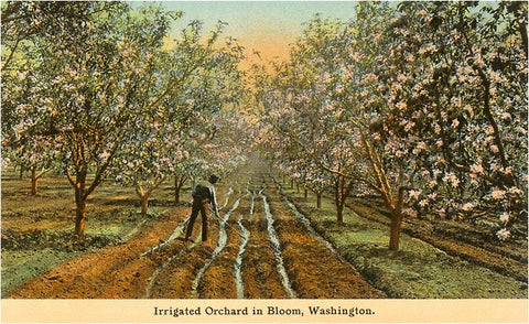 WA-145 Irrigated Orchard in Bloom - Vintage Image