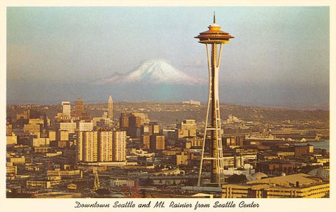 WA-251 Space Needle, Mt. Rainier, Seattle - Vintage Image