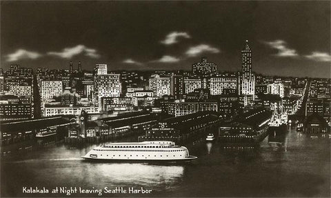 WA-259 Night, Streamlined Ferry, Seattle - Vintage Image