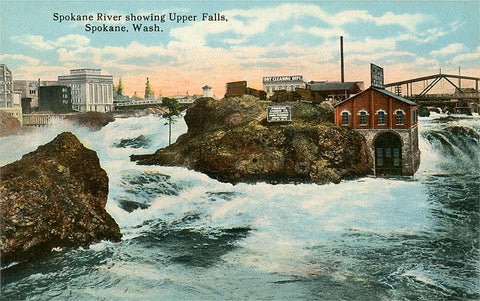 WA-448 Upper Falls, Spokane River - Vintage Image