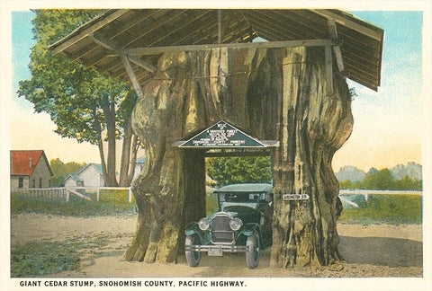 WA-460 Giant Cedar Stump, Pacific Highway - Vintage Image