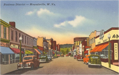 WV-76 Business District, Moundsville, West Virginia - Vintage Image