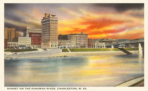WV-94 Sunset on Kanawha River, Charleston, West Virginia - Vintage Image