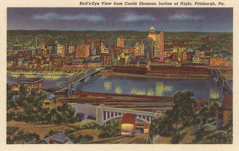 WP-138 Night, Downtown Pittsburgh, Pennsylvania - Vintage Image