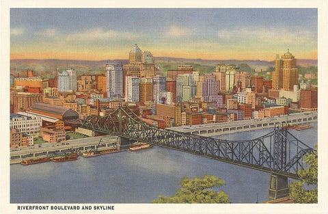 WP-141 Riverfront and Skyline, Pittsburgh, Pennsylvania - Vintage Image