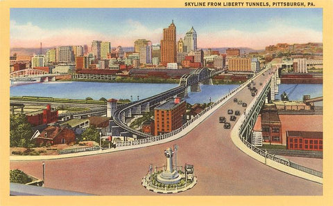 WP-153 Skyline, Bridges, Pittsburgh, Pennsylvania - Vintage Image