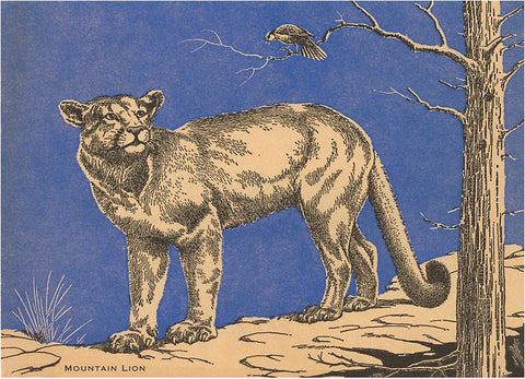 WD-06 Woodcut of Mountain Lion - Vintage Image