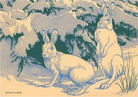 WD-07 Woodcut of Snow Hare - Vintage Image