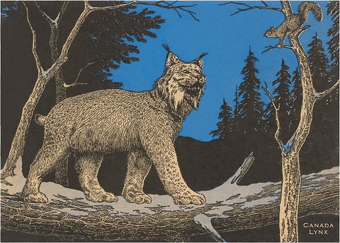 WD-16 Woodcut of Canada Lynx - Vintage Image