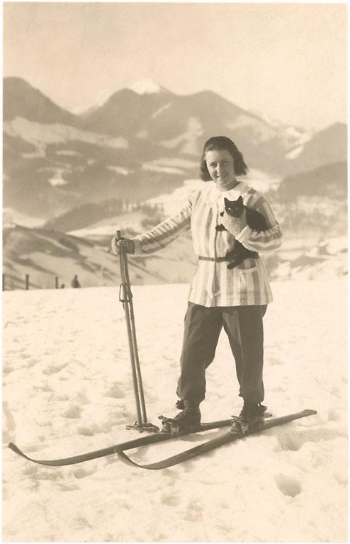 WS-01 Girl Skiing with Cat - Vintage Image