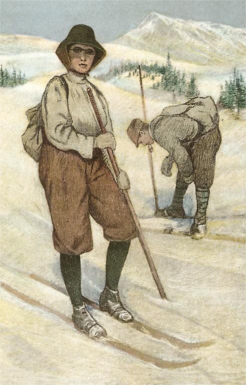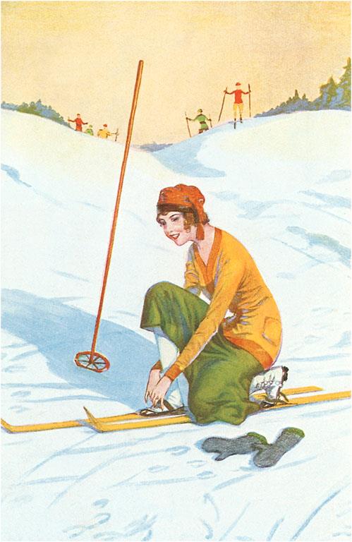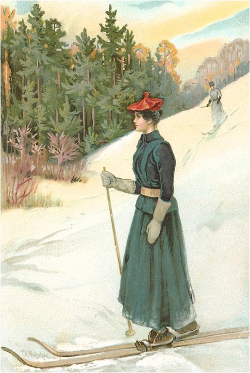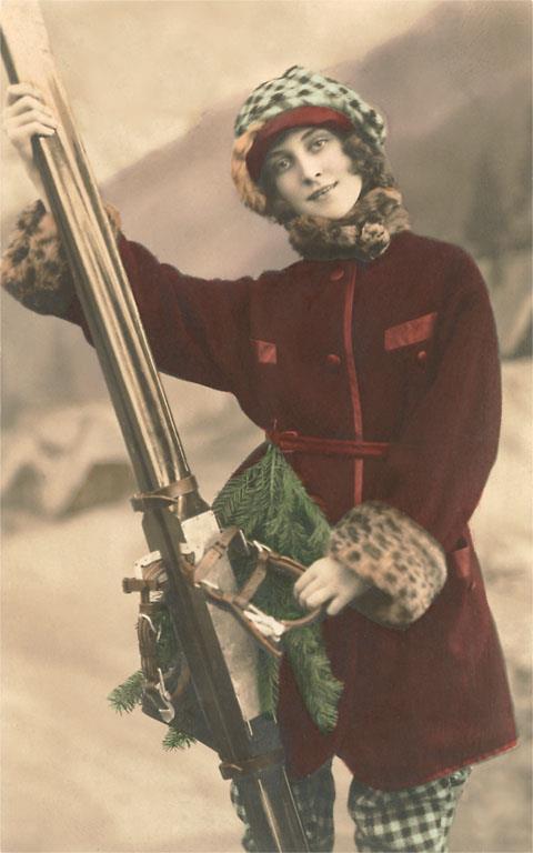 WS-12 Woman with Skis - Vintage Image