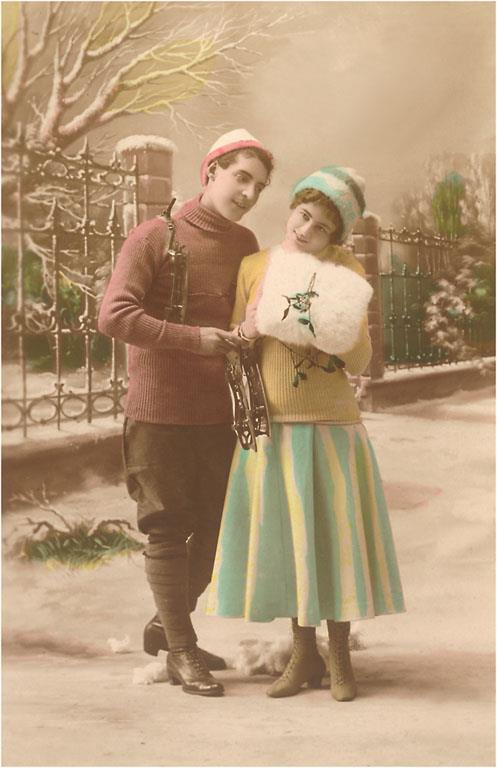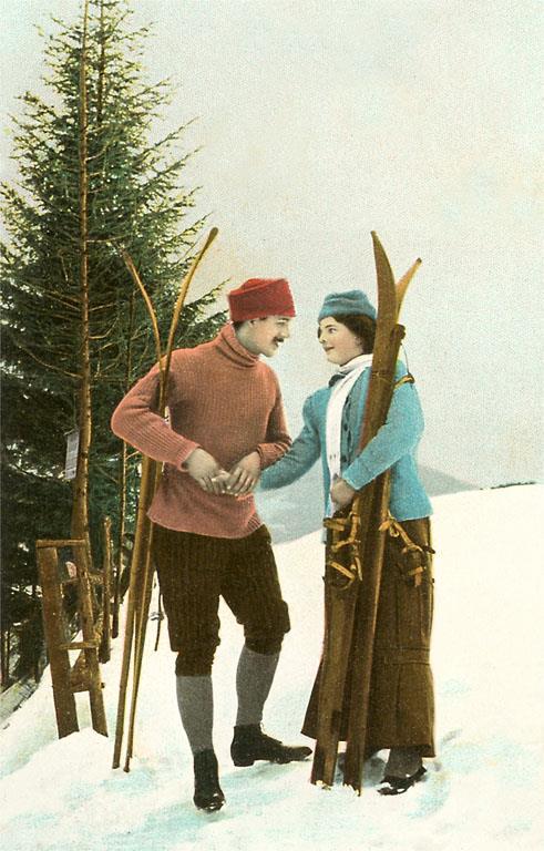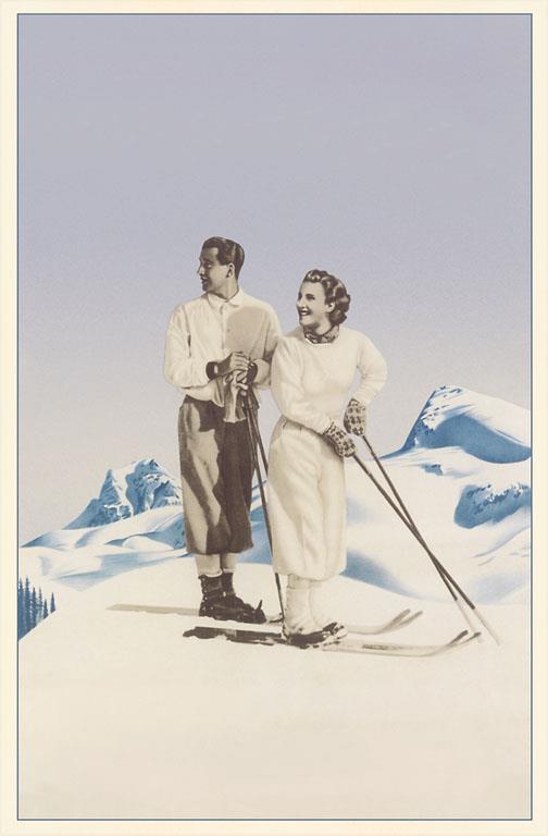 WS-264 Couple with Skis - Vintage Image