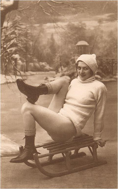 WS-34 Woman on Sled - Vintage Image