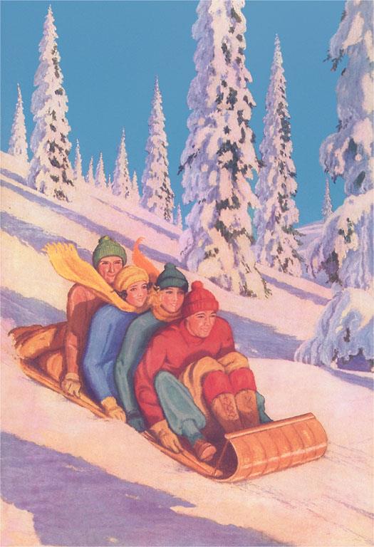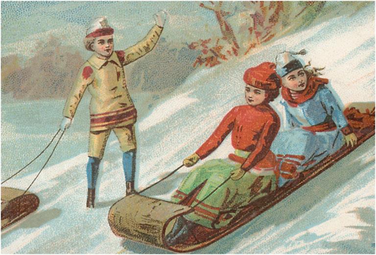 WS-252 Old Time Sledding - Vintage Image