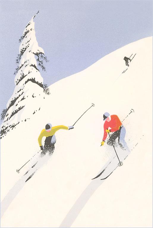 WS-196 Skiing in Powder - Vintage Image