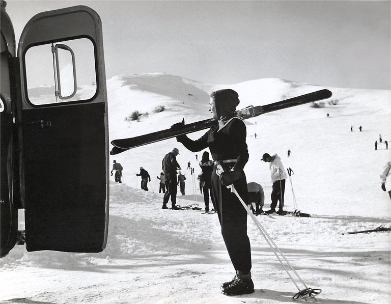 WS-243 Woman with Skis - Vintage Image