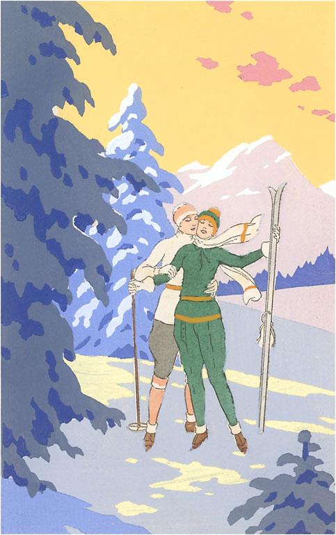 WS-254 Skiing Couple - Vintage Image