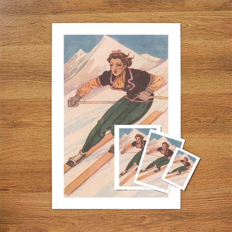 Hit the slopes with our Winter Sports collection. Perfect for wholesale, this collection includes vintage postcards, greeting cards, desktop calendars, art prints, stickers, and magnets, featuring images of winter sports, ideal for retailers looking to offer athletic and nostalgic items.