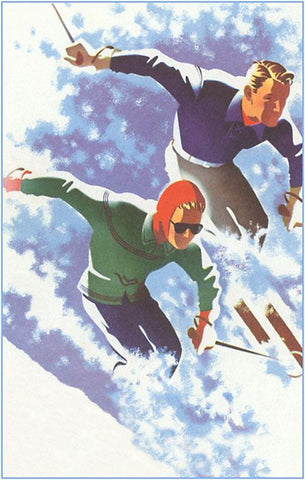 WS-70 Couple Racing through Powder on Skis - Vintage Image