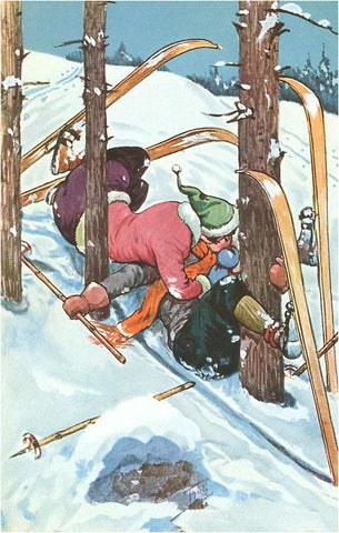 WS-80 Couple Kissing While Crashing on Skis - Vintage Image