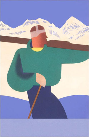 WS-120 Stylized Skier in Mountains - Vintage Image