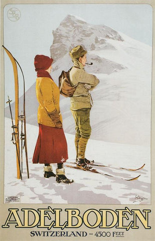 WS-134 Old Time Skiers, Adelboden, Switzerland - Vintage Image