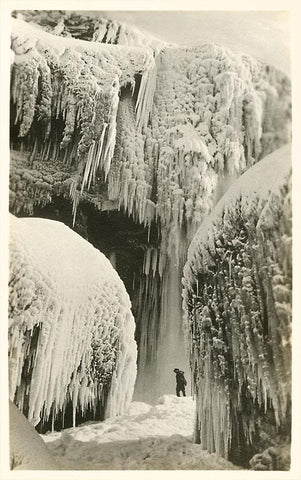 WS-154 Hiker in Frozen Waterfall - Vintage Image