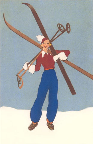 WS-270 Woman Holding Skis and Poles - Vintage Image