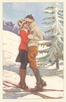 WS-272 Skiing Couple Kissing - Vintage Image