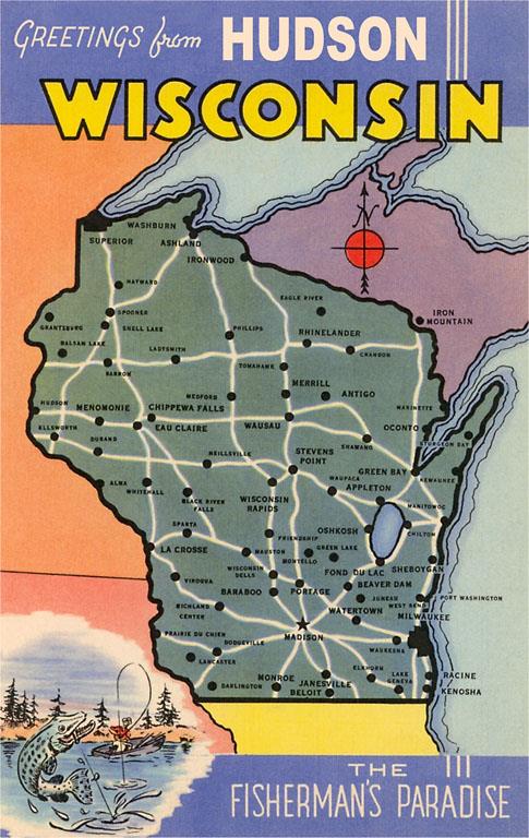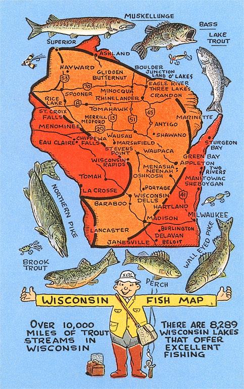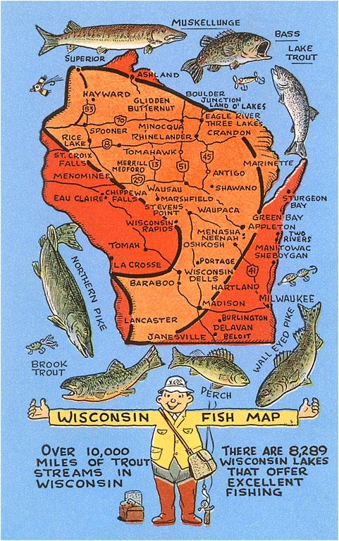 WI-298 Wisconsin Fish Map - Vintage Image