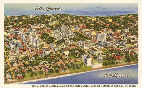 WI-103 Lake Mendota, Lake Monona, Madison, Wisconsin - Vintage Image