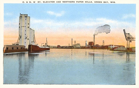 WI-174 Grain Elevator and Paper Mills, Green Bay, Wisconsin - Vintage Image