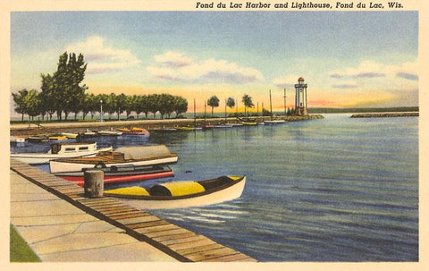 WI-217 Fond du Lac Harbor and Lighthouse, Wisconsin - Vintage Image