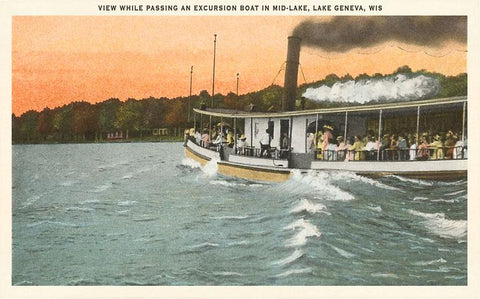 WI-255 Excursion Boat, Lake Geneva, Wisconsin - Vintage Image