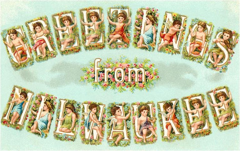 WI-269 Greetings from Milwaukee, Wisconsin, Children in Letters - Vintage Image
