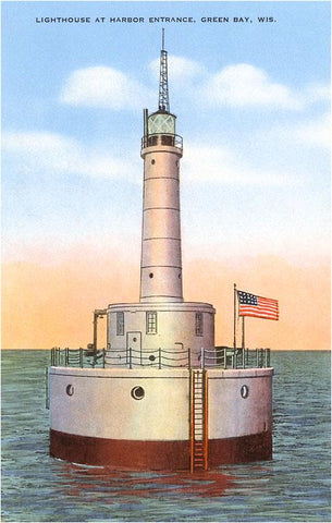 WI-282 Lighthouse, Green Bay, Wisconsin - Vintage Image