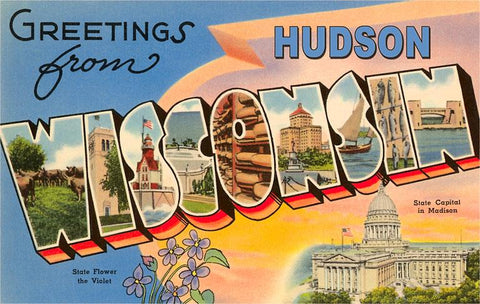 WI-389 Greetings from Hudson, Wisconsin - Vintage Image