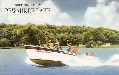 WI-392 Greetings from Pewaukee Lake - Vintage Image
